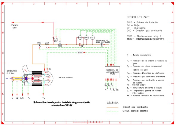 Figură 2 Schema funcţională pentru instalaţia de gaz combustie microturbină 30 kW.